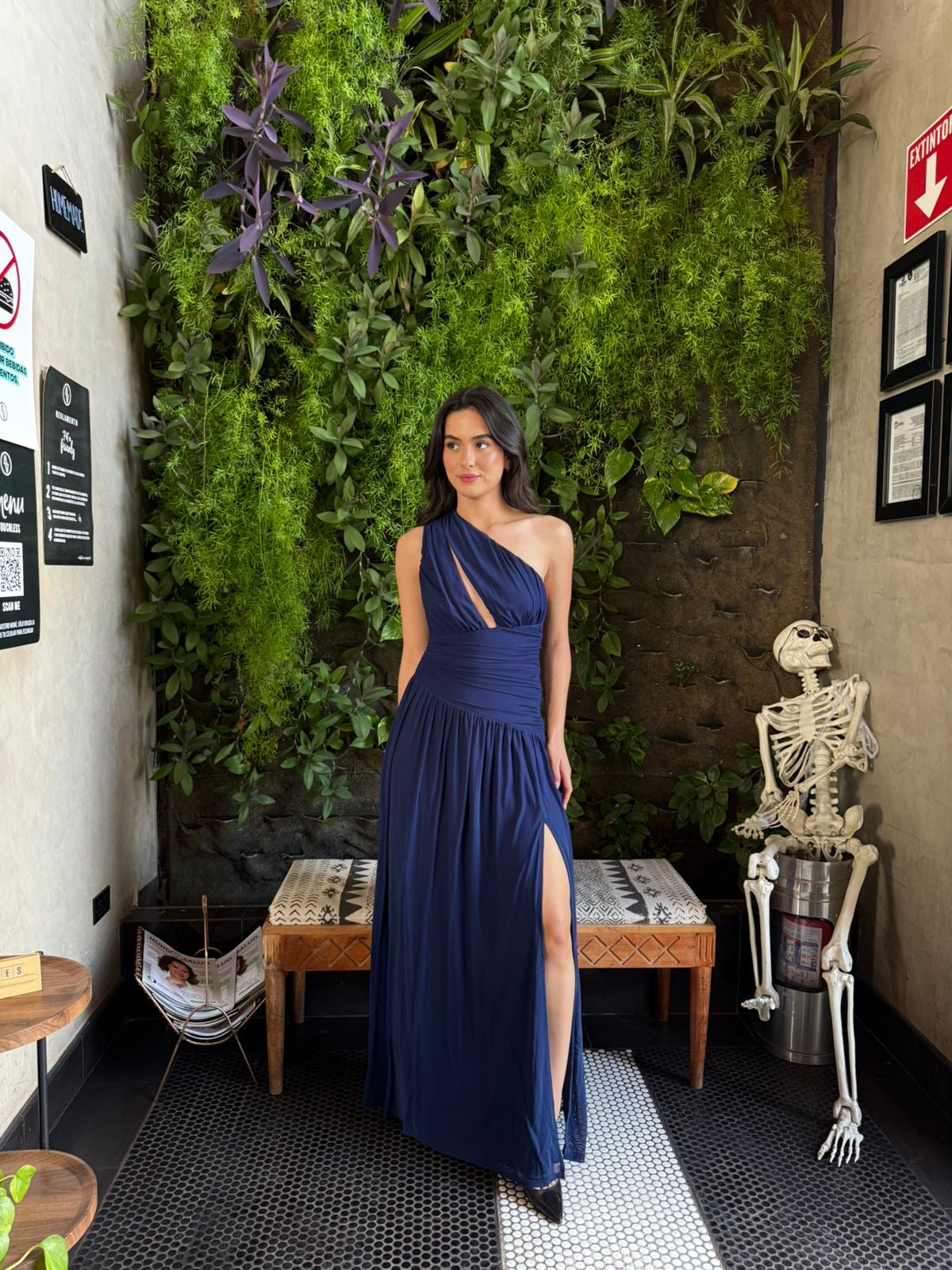 Vestido un Hombro con Escote